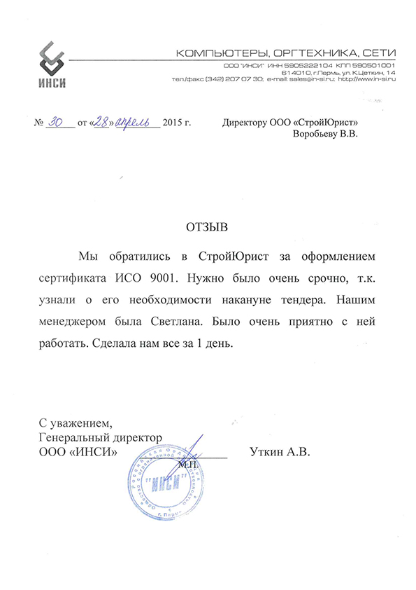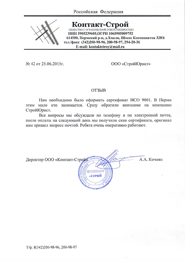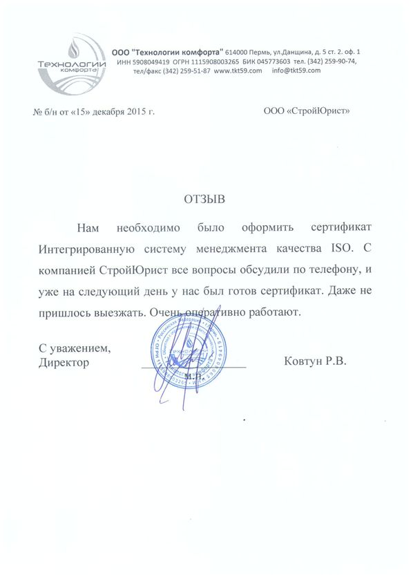 Отзывы клиентов "СтройЮрист" по ISO в Петропавловске-Камчатском
