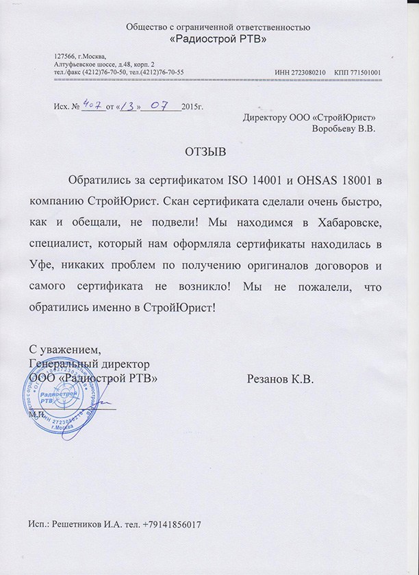 Отзывы клиентов "СтройЮрист" по ISO в Петропавловске-Камчатском