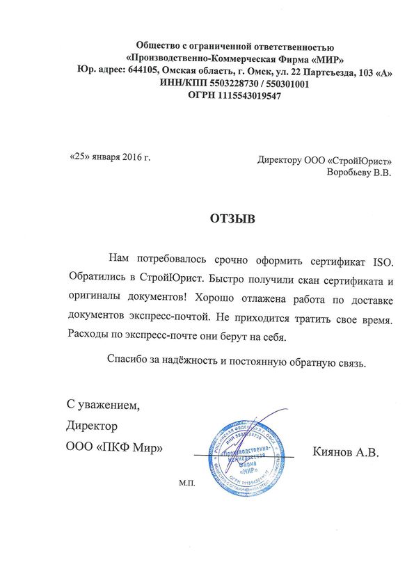 Отзывы клиентов "СтройЮрист" по ISO в Петропавловске-Камчатском