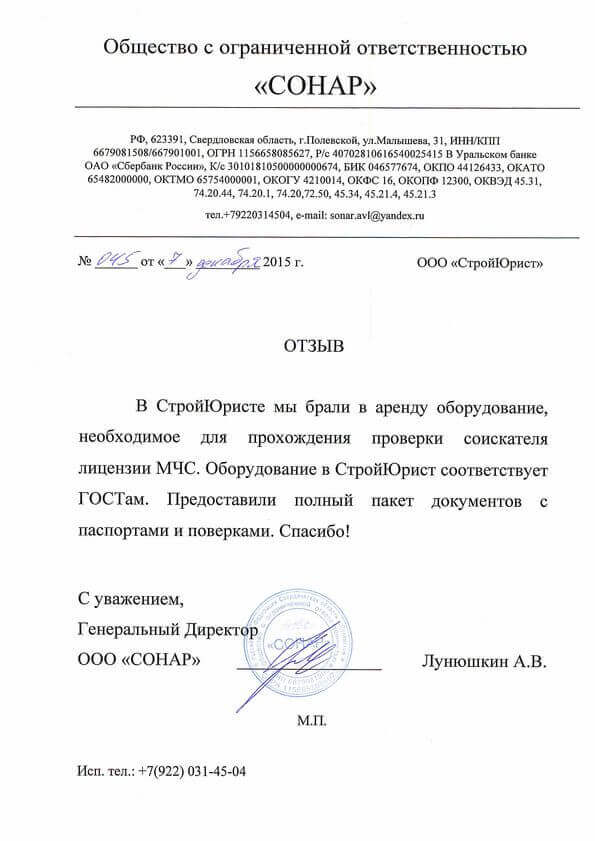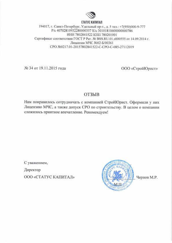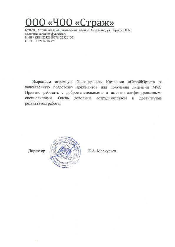 Отзывы клиентов "СтройЮрист" по лицензированию МЧС в Петропавловске-Камчатском