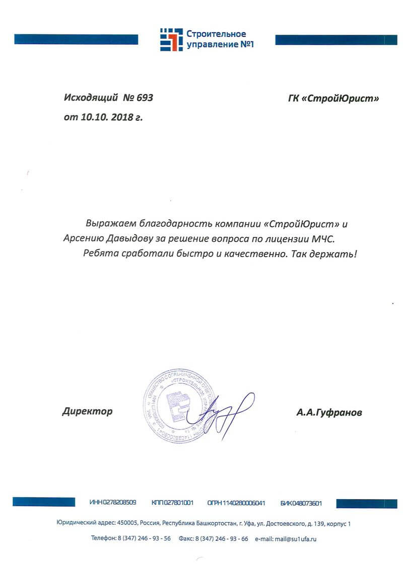 Отзывы клиентов "СтройЮрист" по лицензированию МЧС в Петропавловске-Камчатском