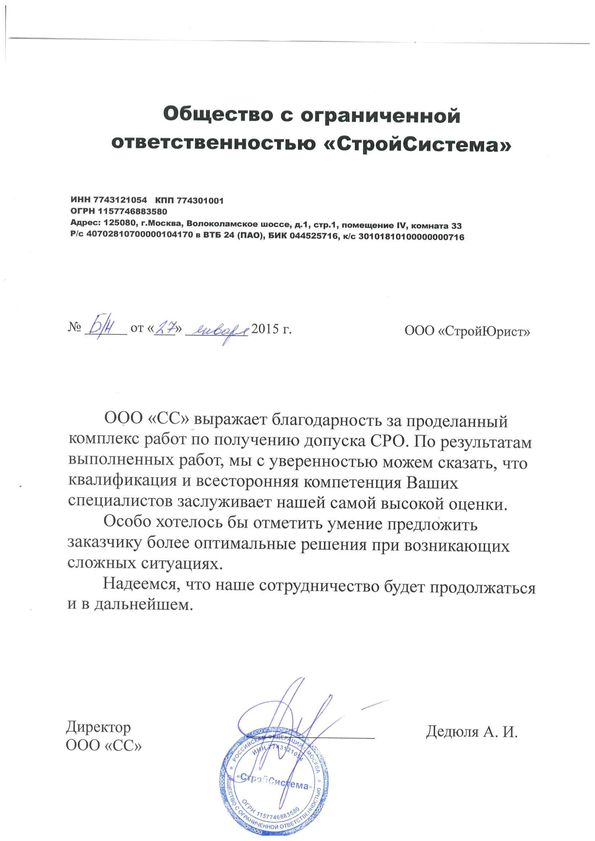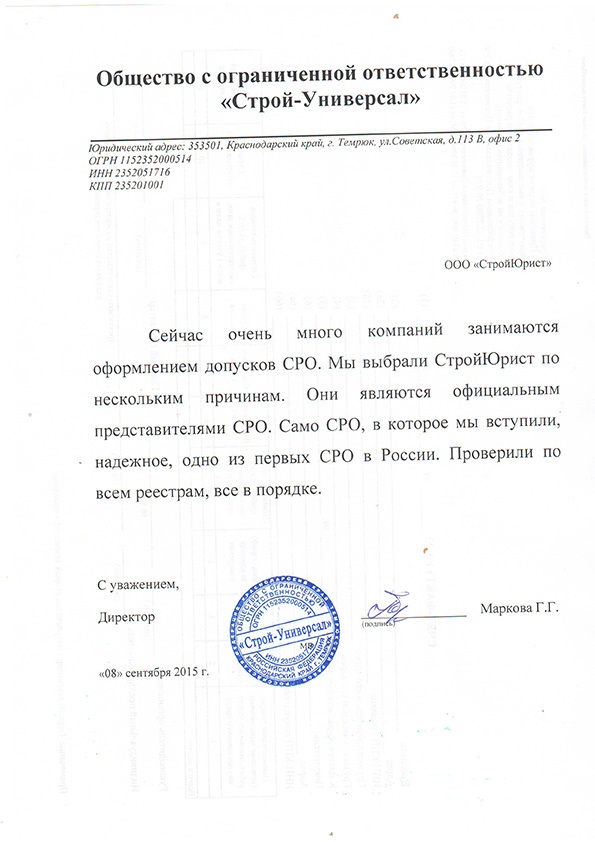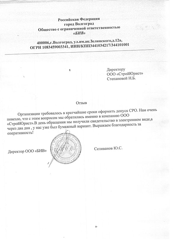 Отзывы клиентов "СтройЮрист" по вступлению в СРО в Петропавловске-Камчатском