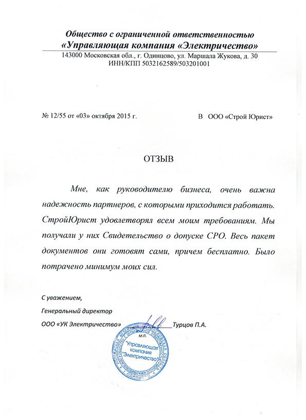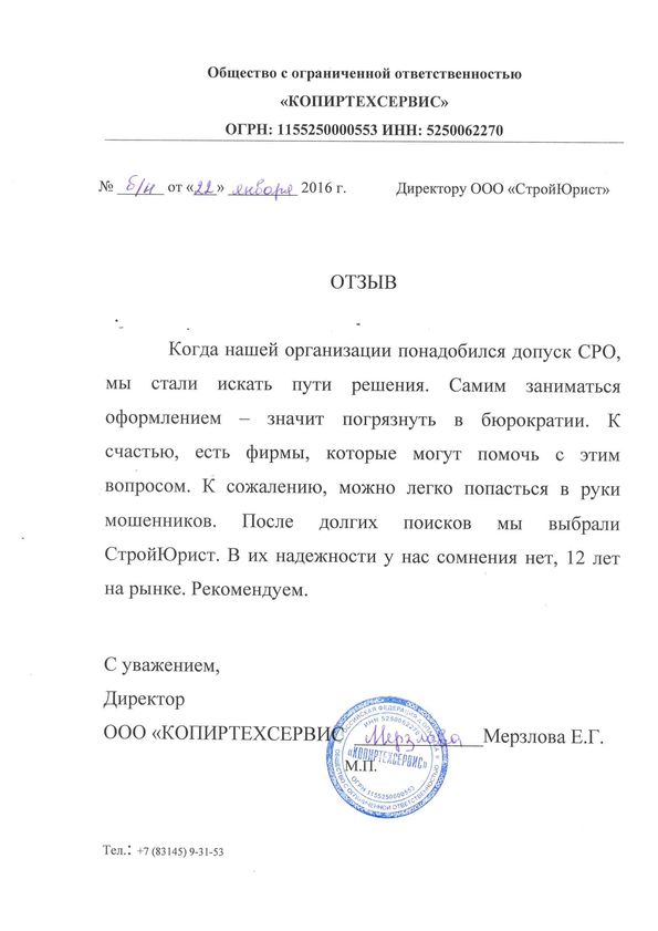 Отзывы клиентов "СтройЮрист" по вступлению в СРО в Петропавловске-Камчатском