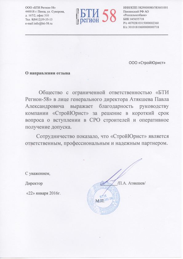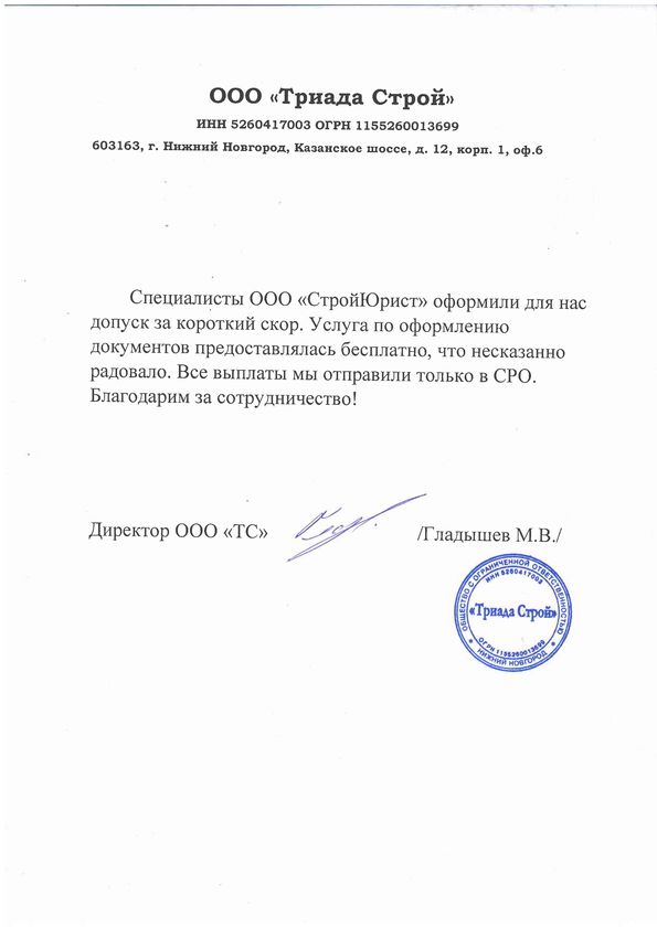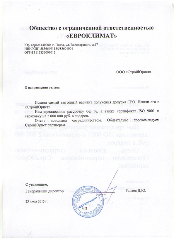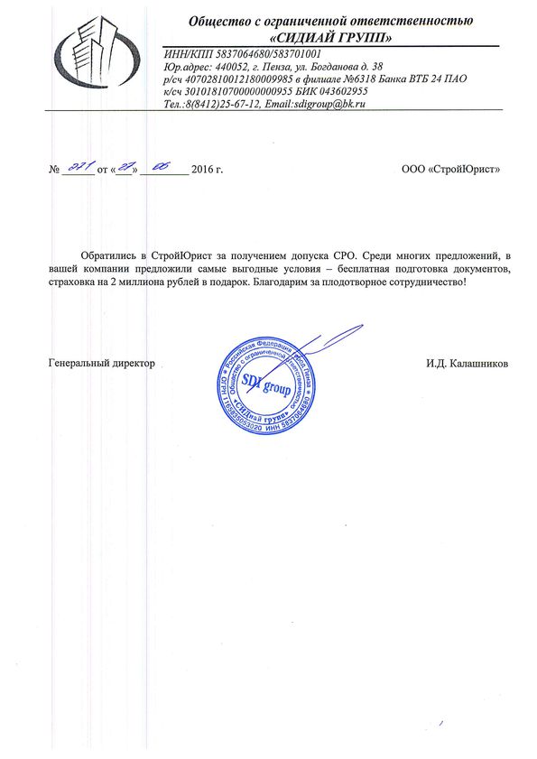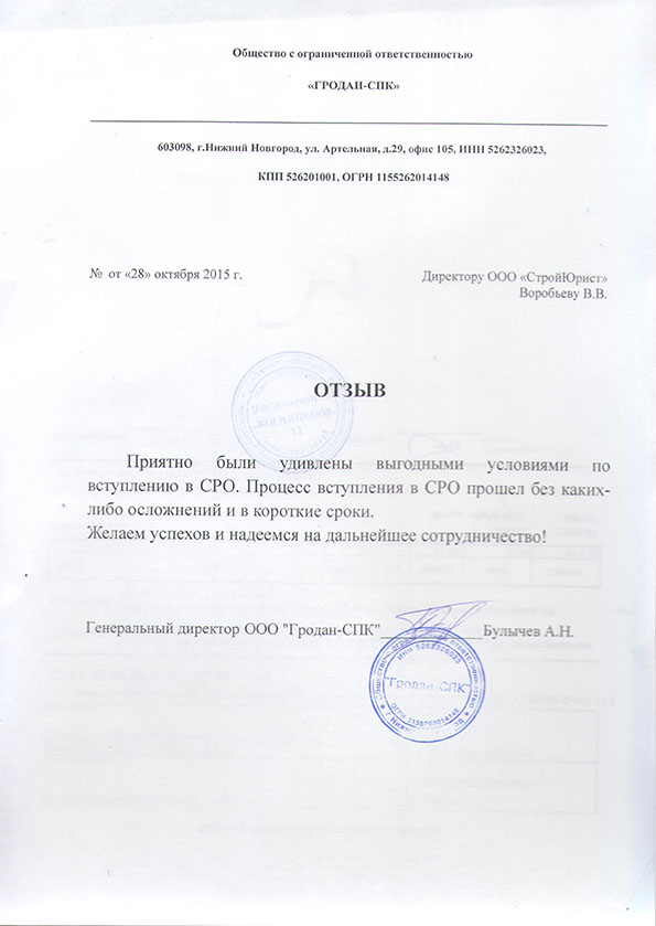Отзывы клиентов "СтройЮрист" по вступлению в СРО в Петропавловске-Камчатском