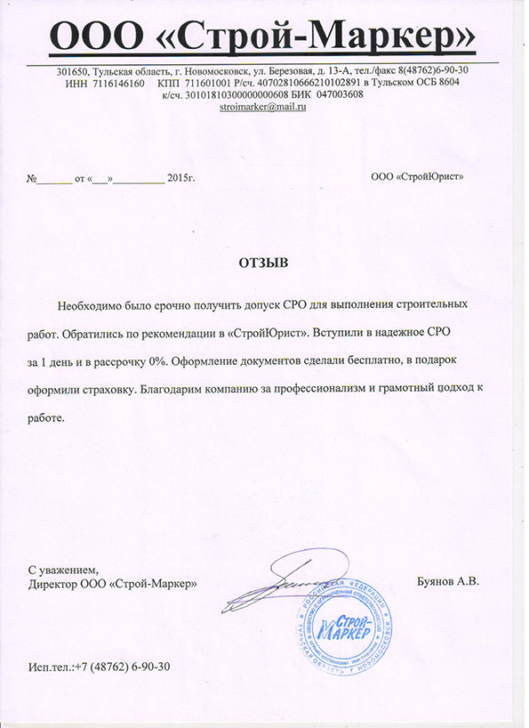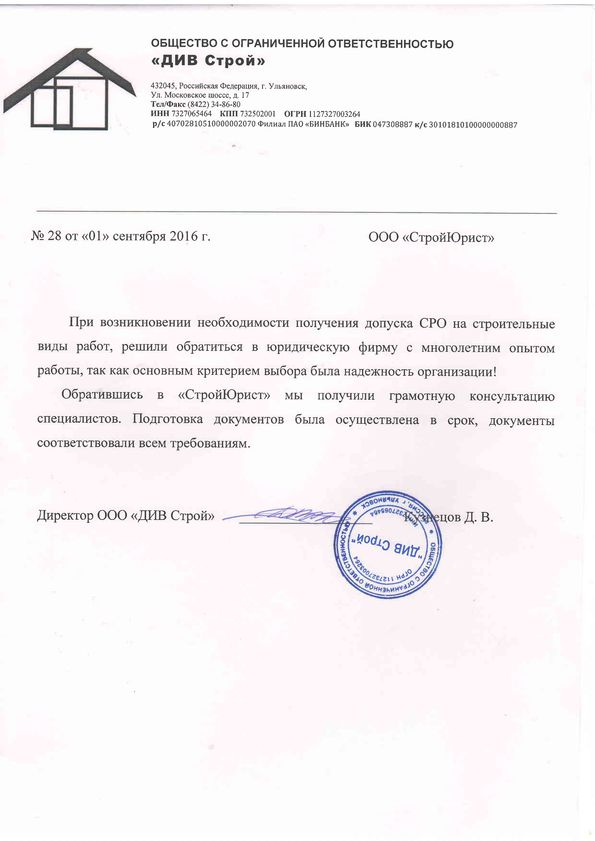 Отзывы клиентов "СтройЮрист" по вступлению в СРО в Петропавловске-Камчатском