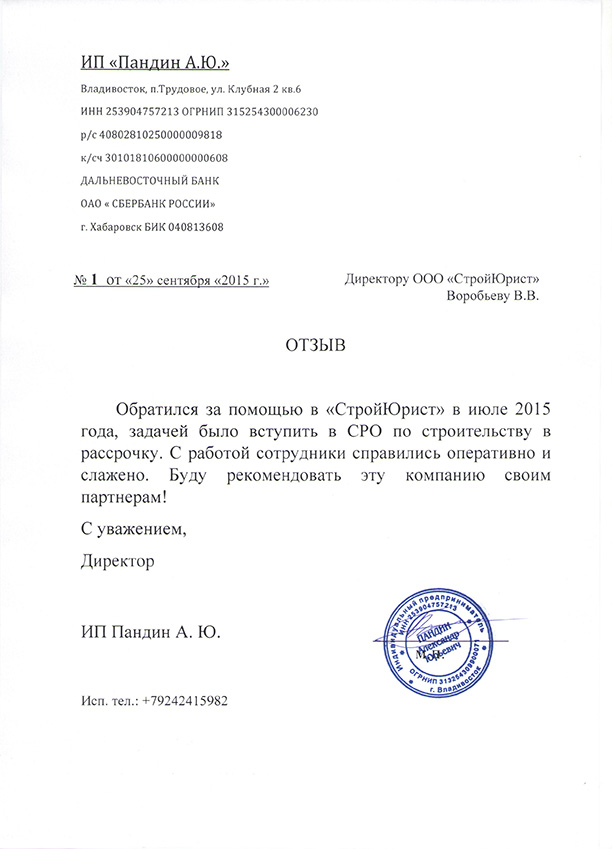 Отзывы клиентов "СтройЮрист" по вступлению в СРО в Петропавловске-Камчатском