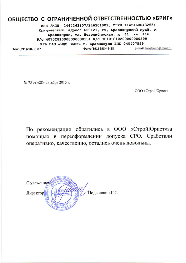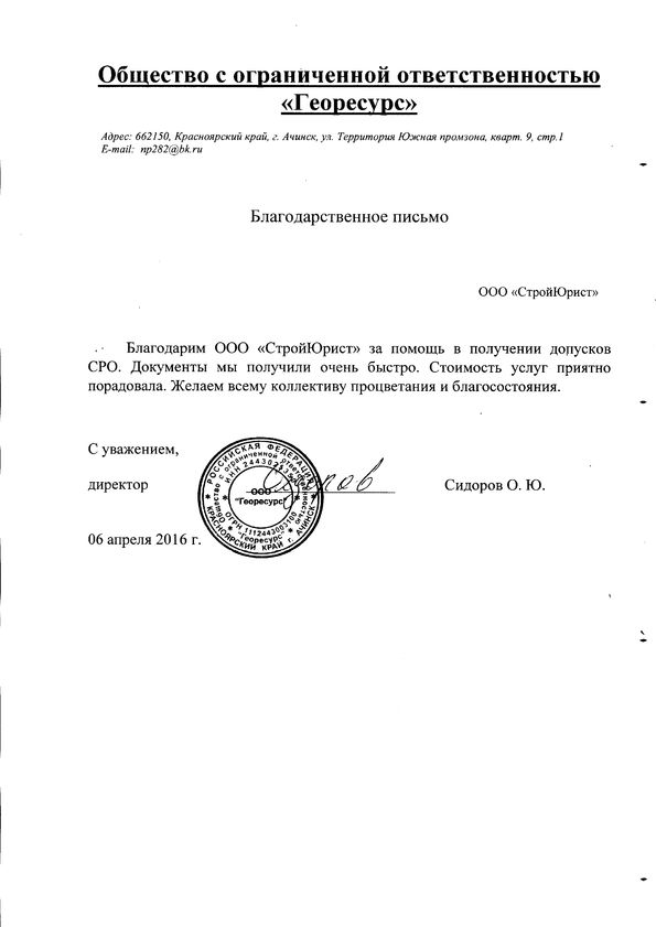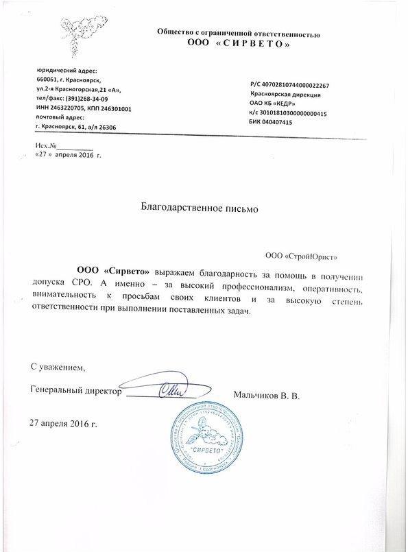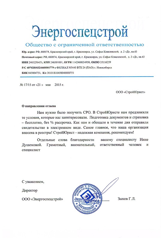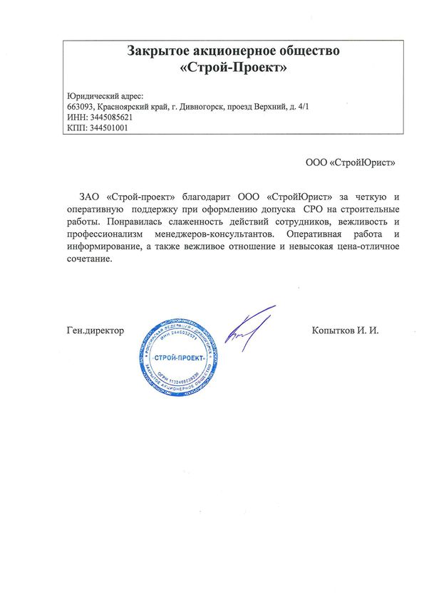 Отзывы клиентов "СтройЮрист" по вступлению в СРО в Петропавловске-Камчатском