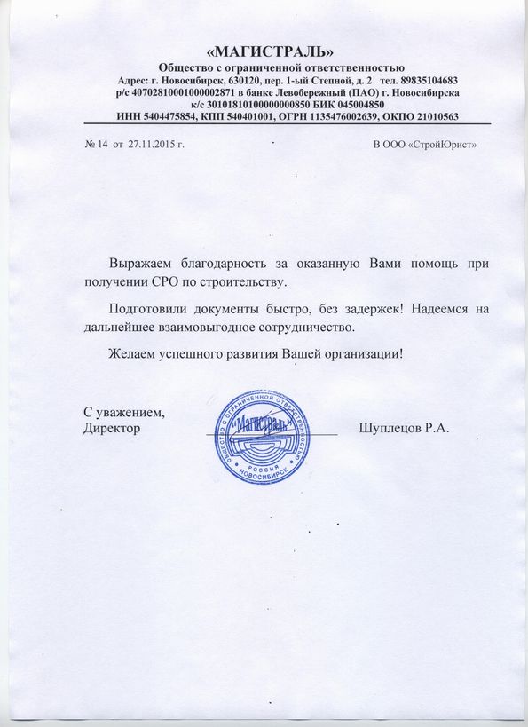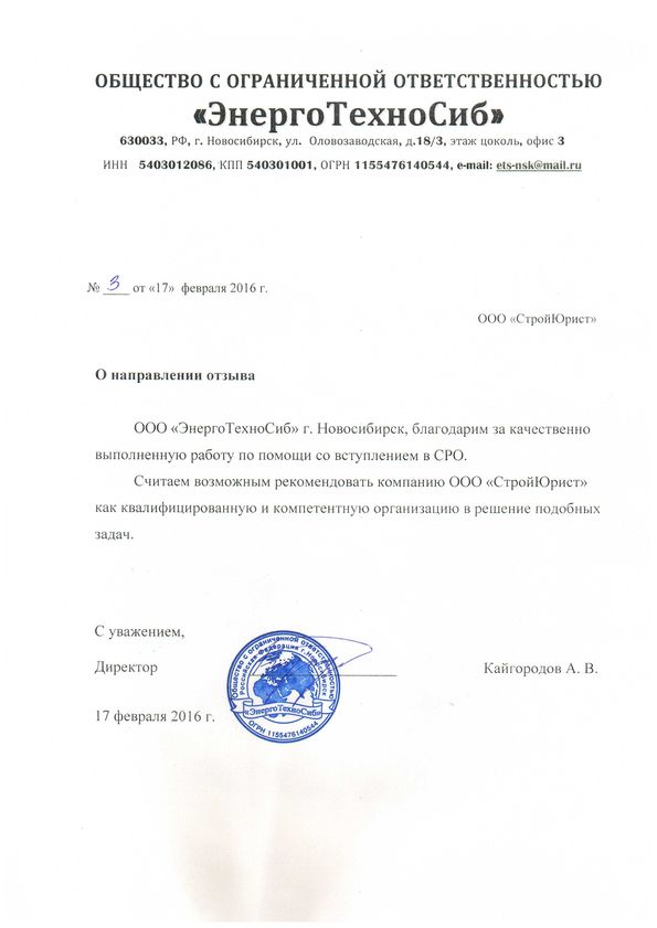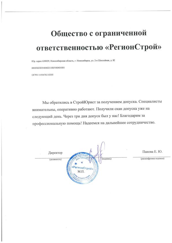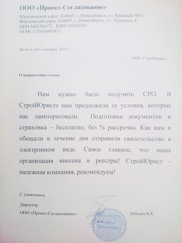 Отзывы клиентов "СтройЮрист" по вступлению в СРО в Петропавловске-Камчатском
