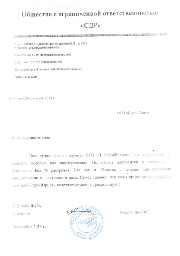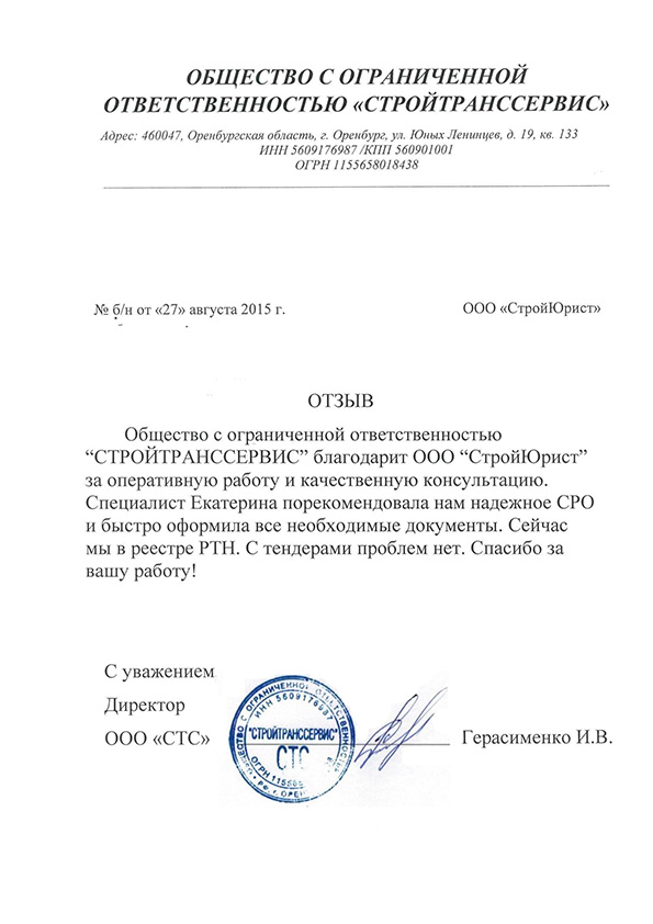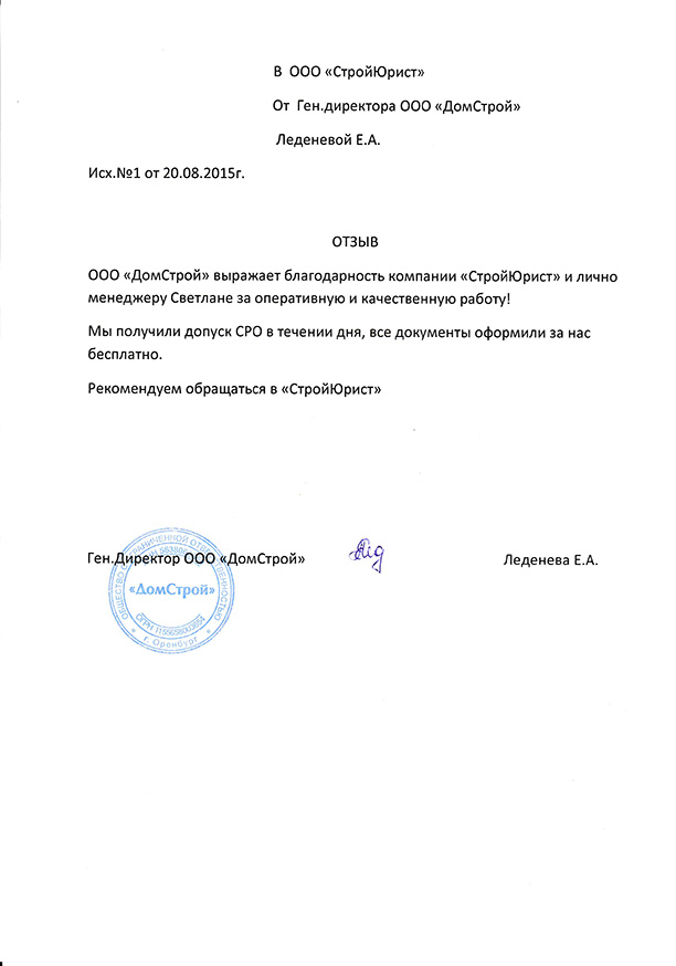 Отзывы клиентов "СтройЮрист" по вступлению в СРО в Петропавловске-Камчатском