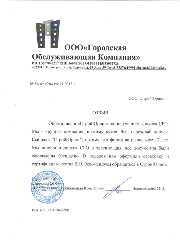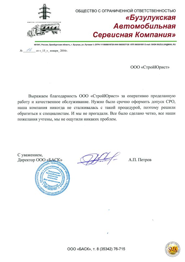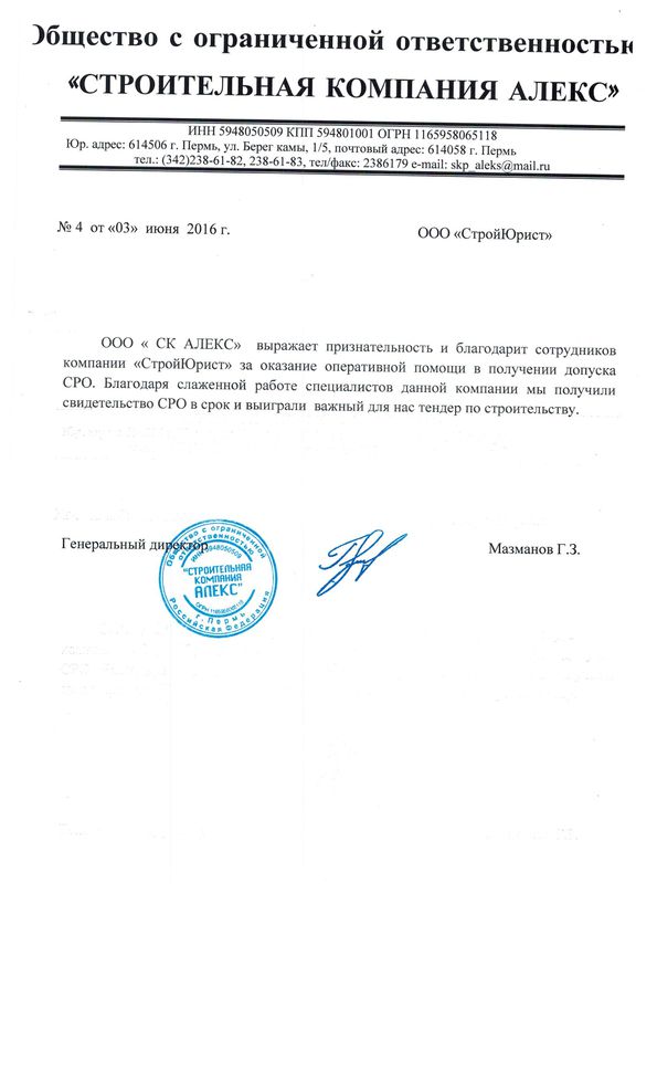 Отзывы клиентов "СтройЮрист" по вступлению в СРО в Петропавловске-Камчатском