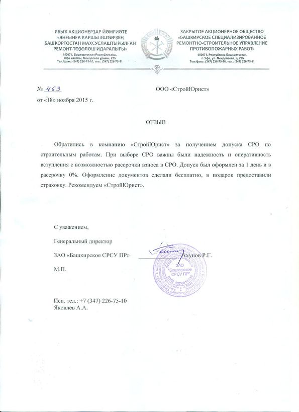 Отзывы клиентов "СтройЮрист" по вступлению в СРО в Петропавловске-Камчатском