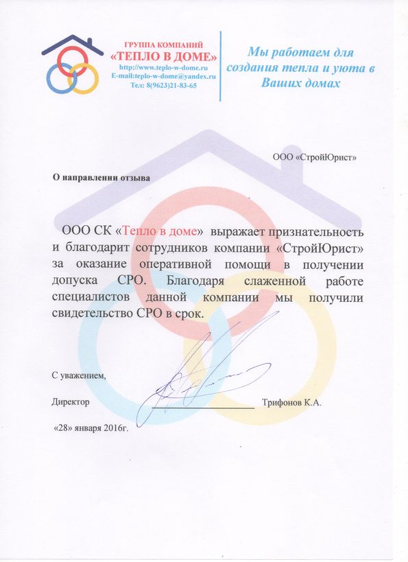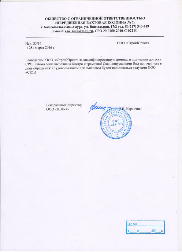 Отзывы клиентов "СтройЮрист" по вступлению в СРО в Петропавловске-Камчатском